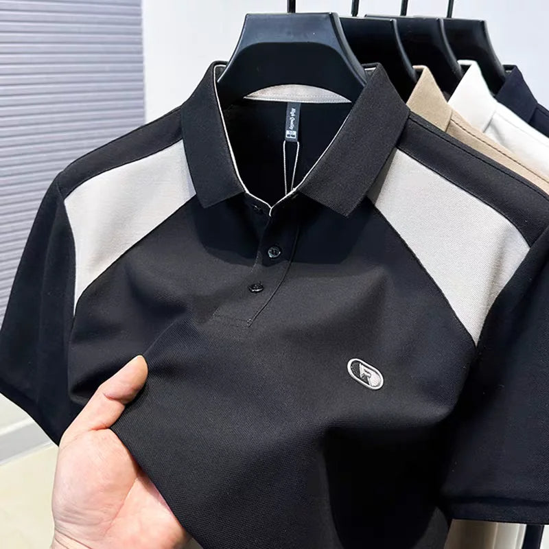 Fashion color blocked short sleeve polo T-shirt